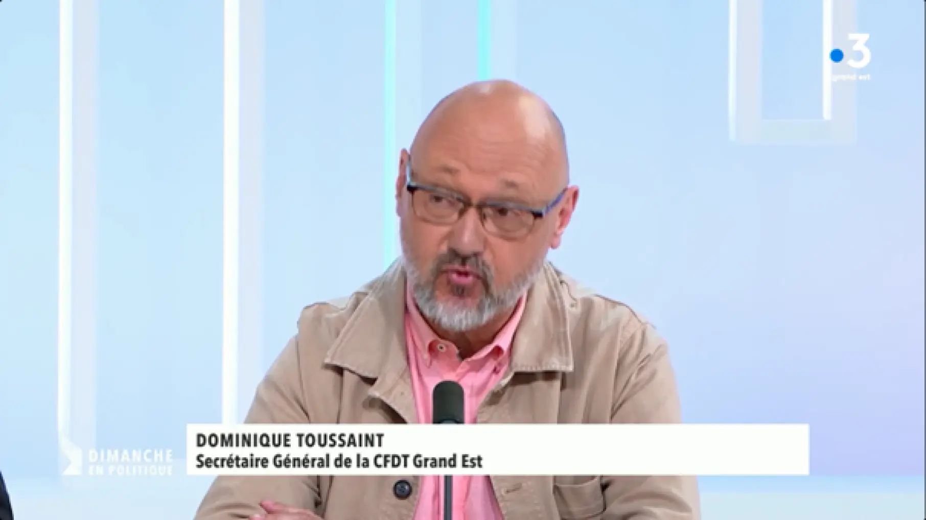 Dominique TOUSSAINT, secrétaire général de la CFDT Grand Est, était l'invité de l'émission "Dimanche en politique", diffusé le 07 mai 2023.