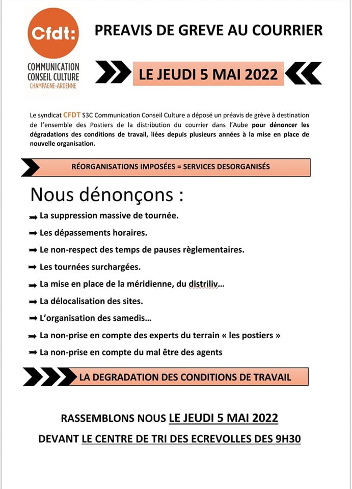Les postiers de la distribution du courrier dans l’Aube subissent les réorganisations « désorganisées » imposées par la poste. Les agents sont fatigués de cette situation qui dure depuis bien trop longtemps.