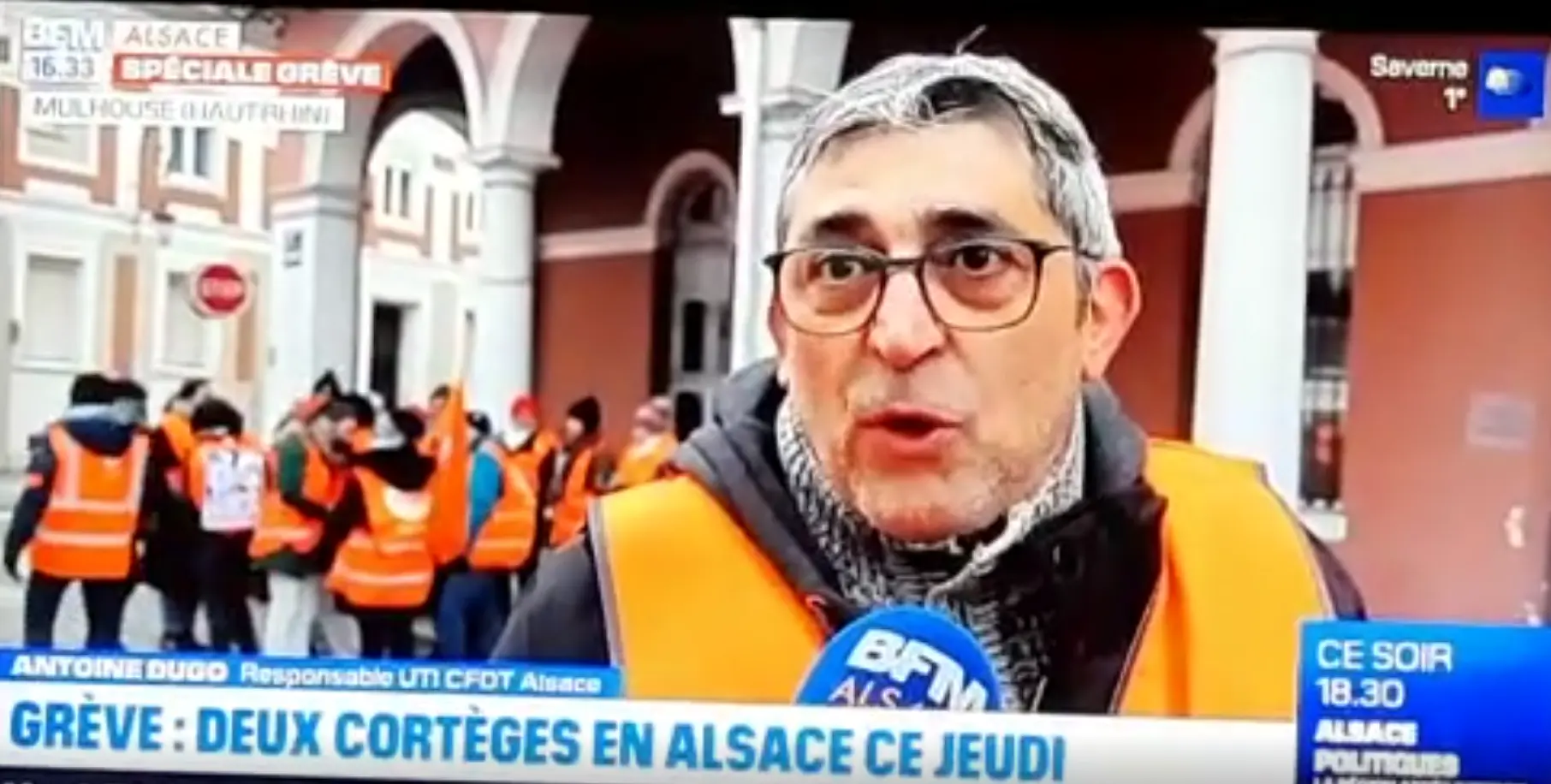 SAntoine DUGO, Responsable à l'UTI Alsace CFDT, s'exprime à la TV BFM Alsace sur la réforme des retraites