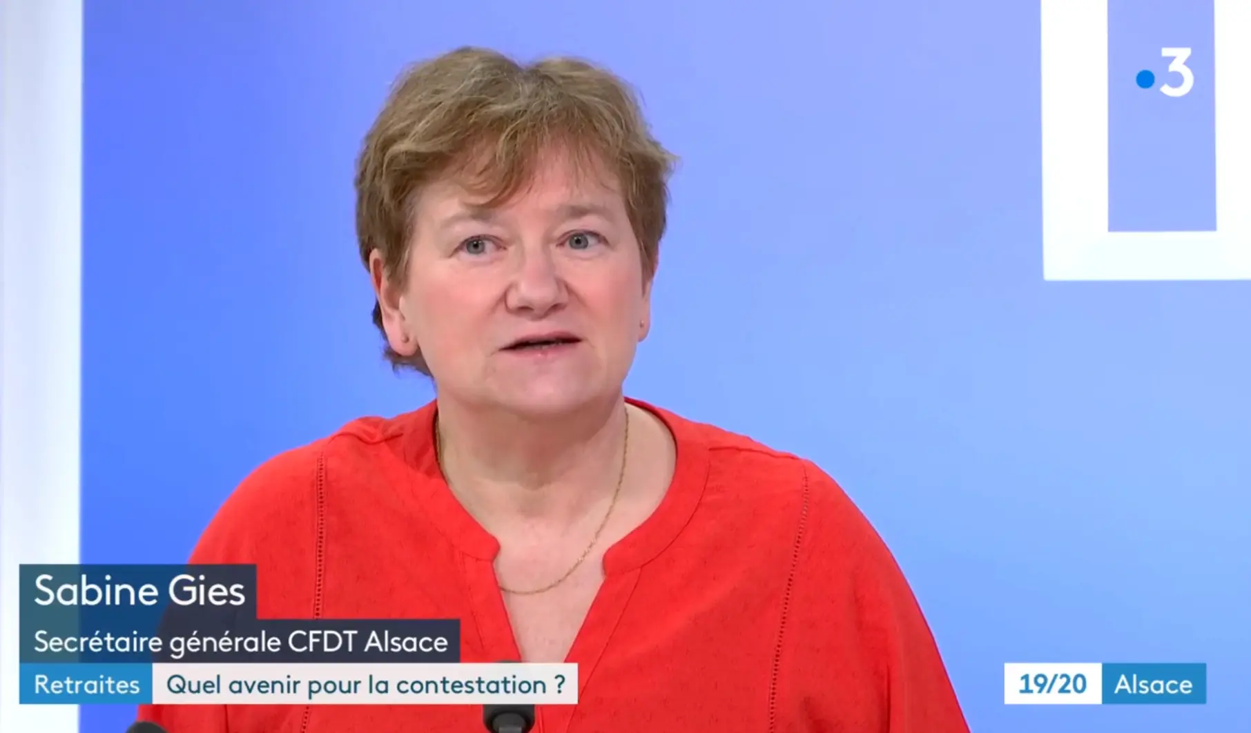 Sabine GIES intervient sur les retraites dans l'émission le 29 janvier et le JT 19/20 Alsace le 1er février 2023.